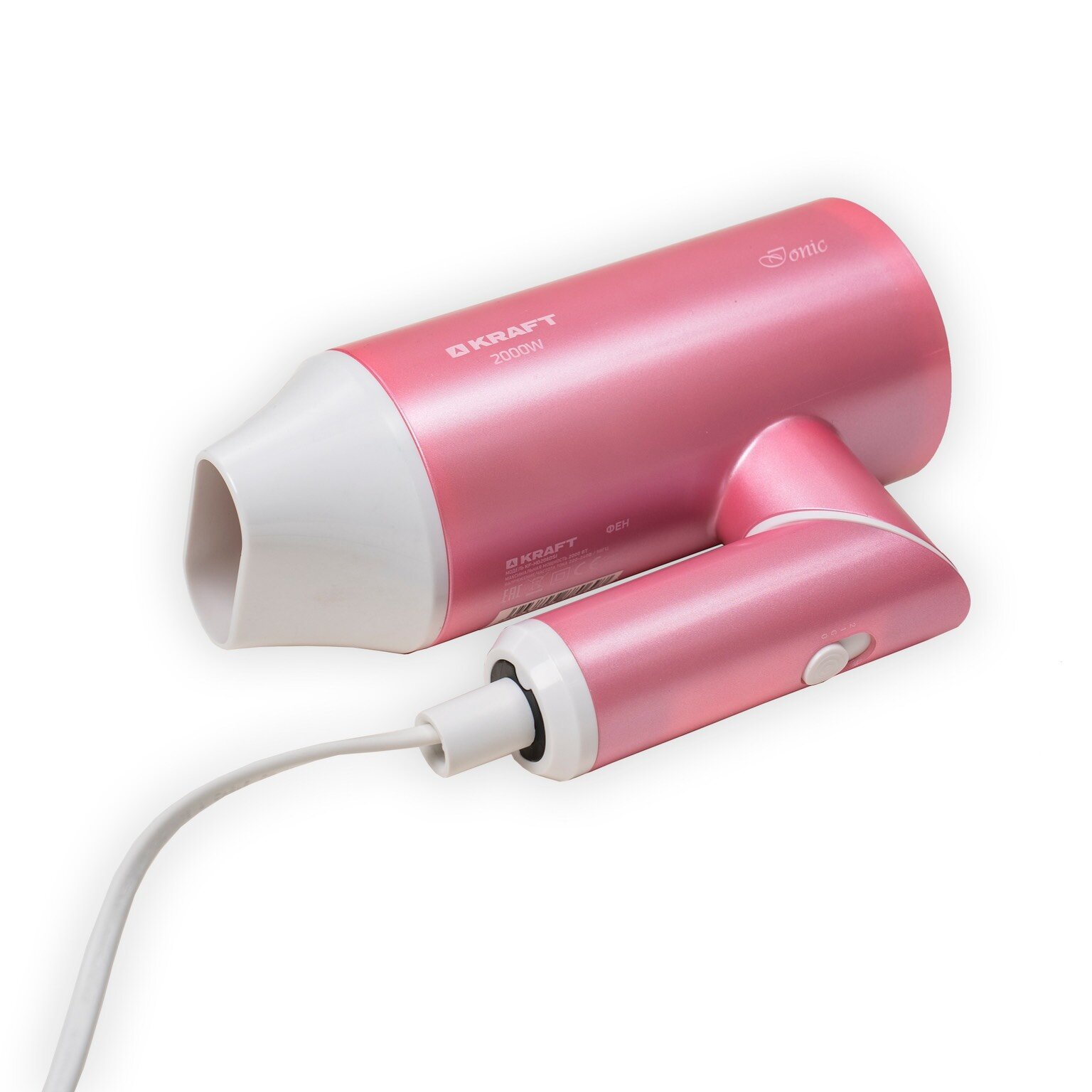 Купить Фен для волос Kraft KF-HD206DSI, 2 режима, складная ручка, розовый, 2000 Вт