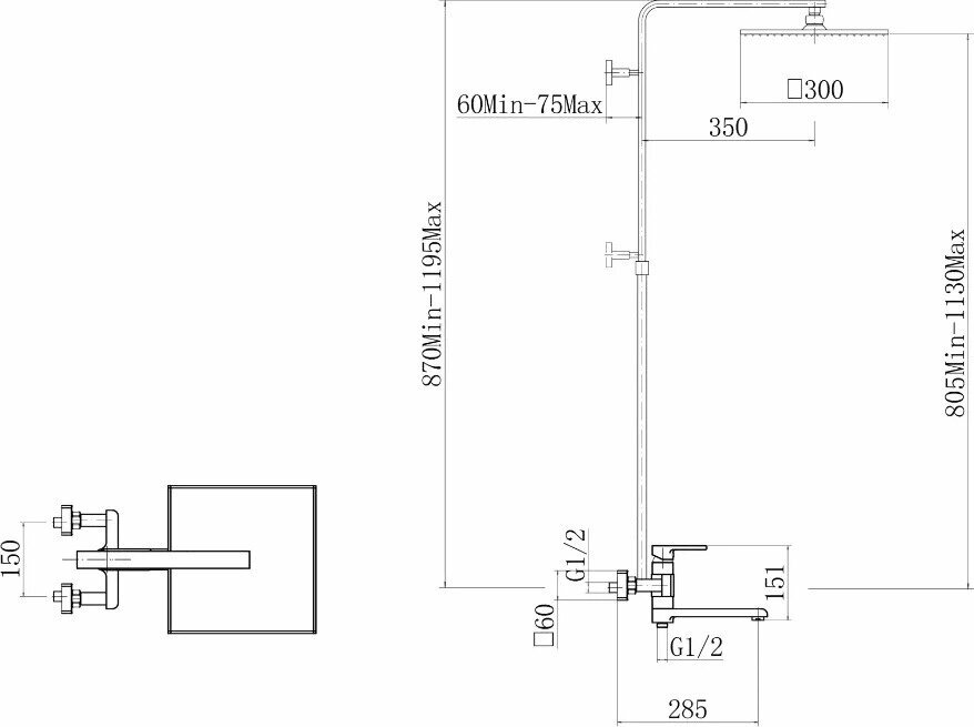 | Комплектация | Душевая стойка ,смеситель / установочный комплект / штанга / верхняя лейка / ручная лейка / шланг |