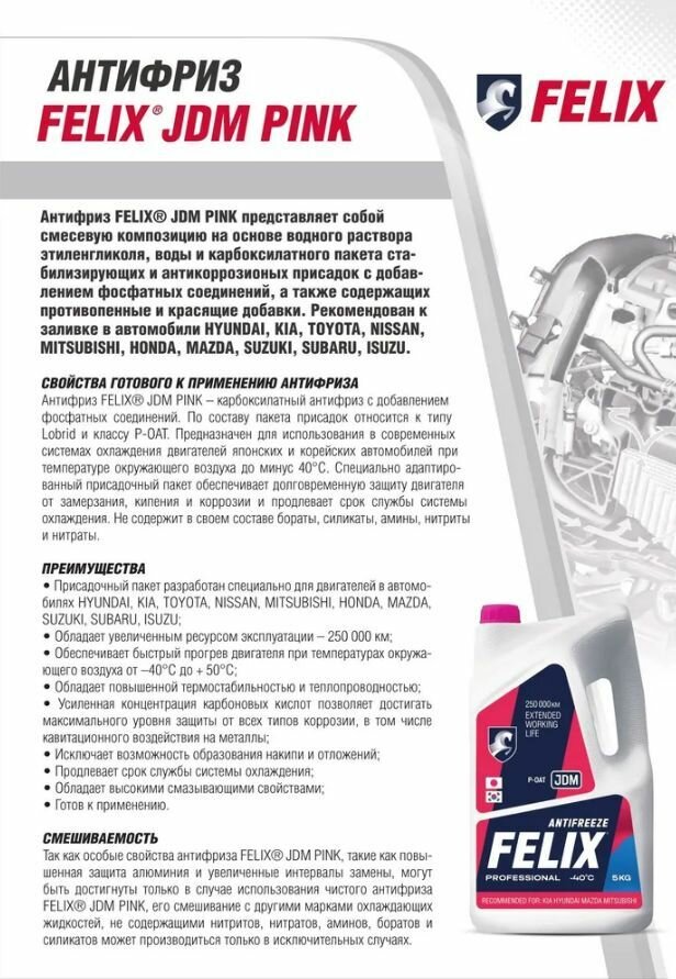 Сохранить430206402_Антифриз! Felix jdm pink 5 kg готовый розовый до -40 g12++\ Felix 430206402 интересное: