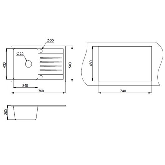 Кухонная мойка GRANULA ST-7602, кварц, 76см х 50см