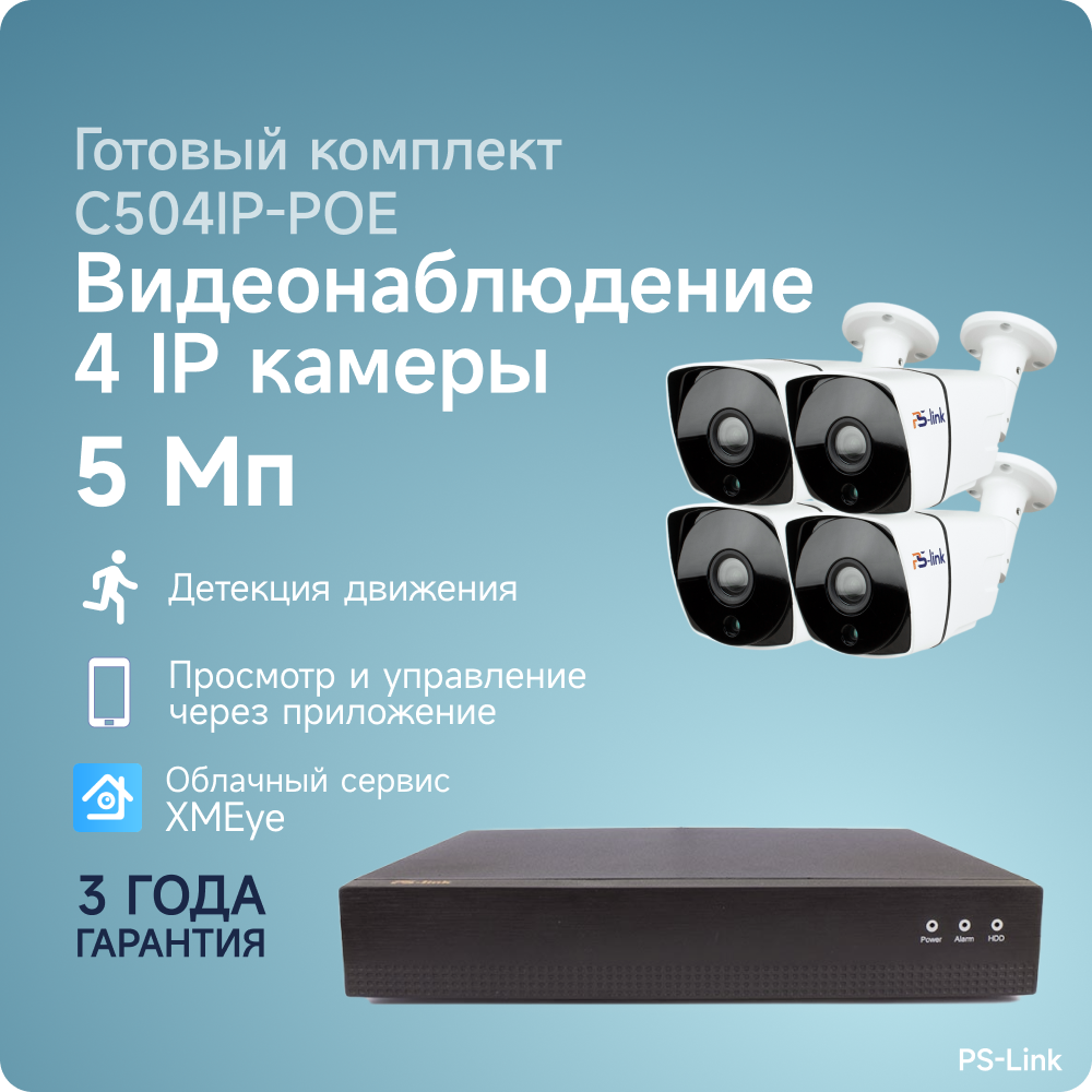 Комплект видеонаблюдения PS-link KIT-C504IP-POE