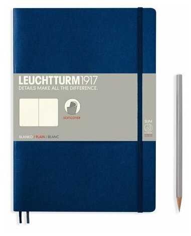 Записная книжка Leuchtturm Composition В5, нелинованная, темно-синий, 123 страниц, мягкая обложка