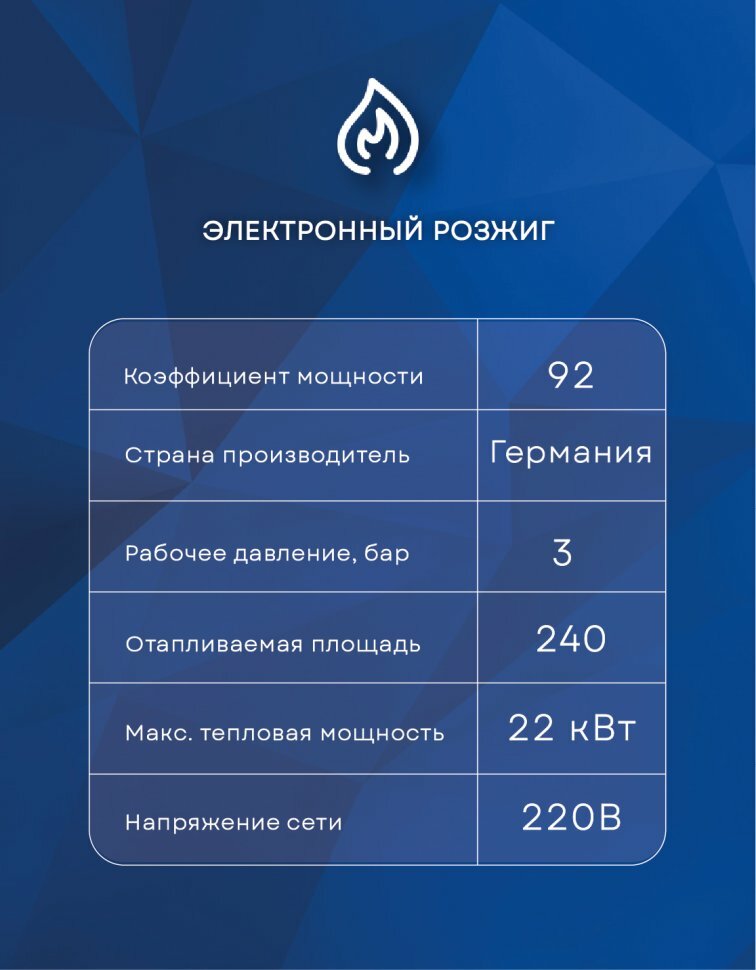 | Тепловая мощность | 7.80 - 22 кВт |