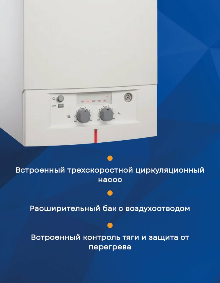 | Плюсы: | расширительный бак, защита от перегрева |