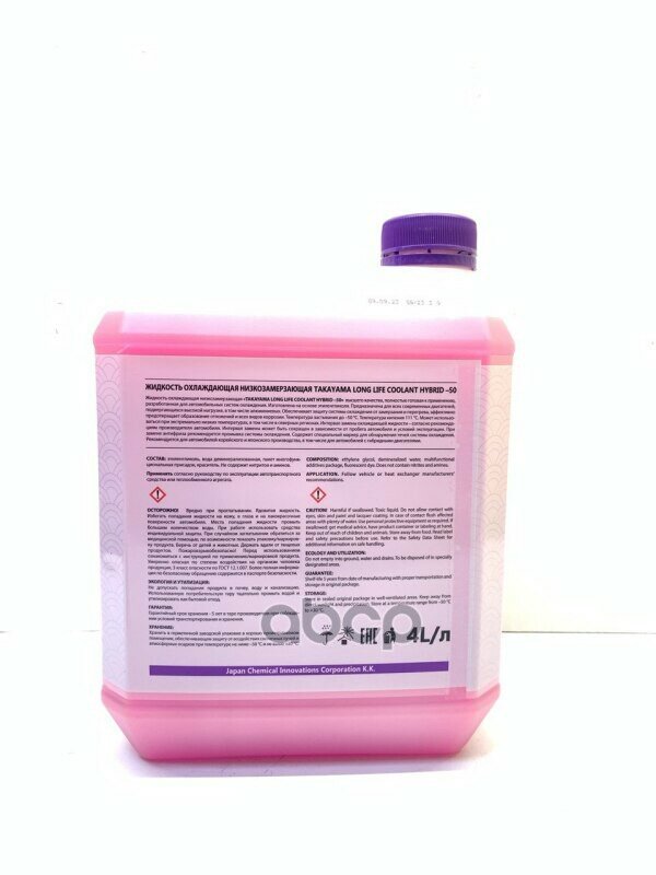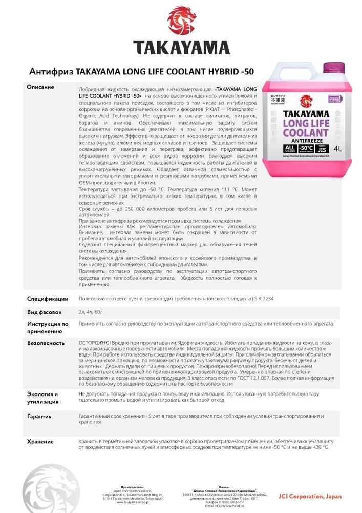 Антифриз TAKAYAMA LONG LIFE COOLANT HYBRID фиолетовый 4 л 700506 интересное: