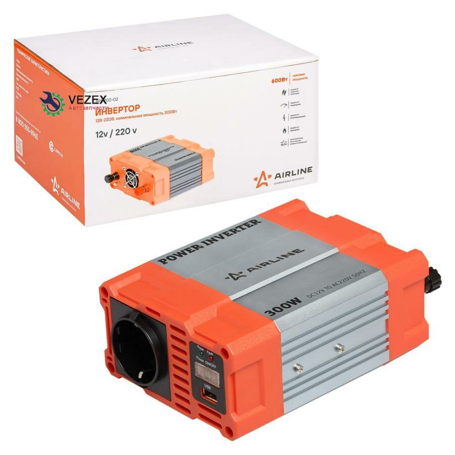 AIRLINE API20002 API-200-02_инвертор! 12в-220в, 300 вт \