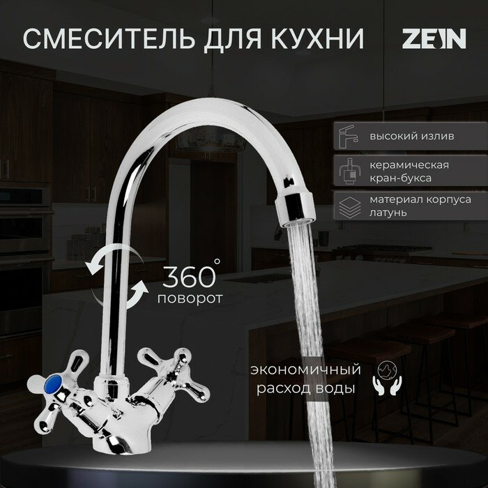 Купить ZEIN Смеситель для кухни ZEIN Z3101, двухвентильный, высокий излив, хром