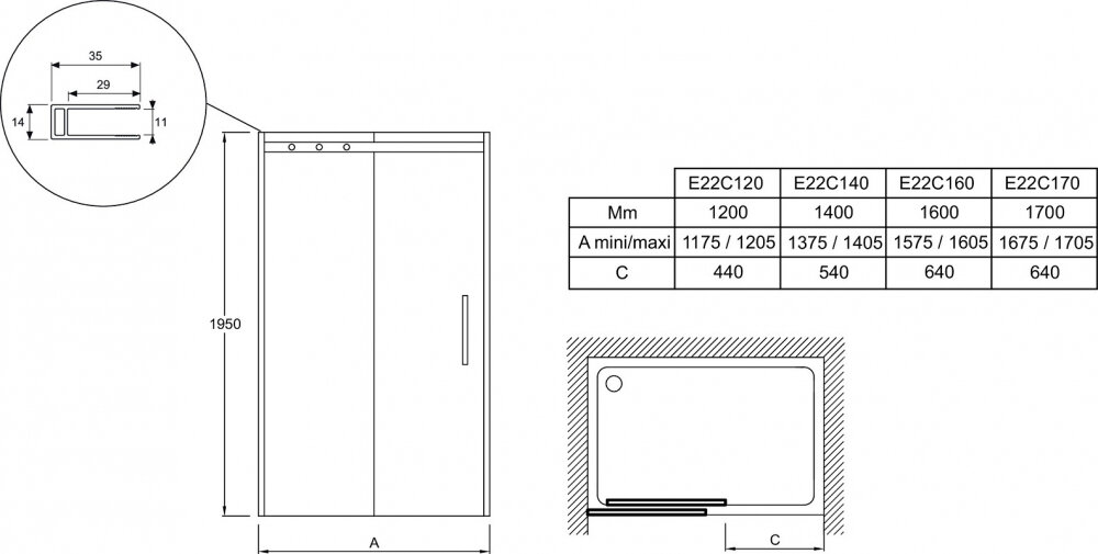 Душевая дверь в нишу Jacob Delafon Contra E22C140-BL раздвижная 195x140 черный
