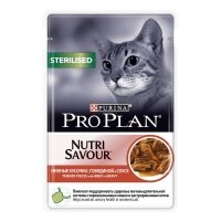 Корм для кошек PRO PLAN Sterilised для стерилизованных, с говядиной в соусе пауч 85г (упаковка - 26 шт)