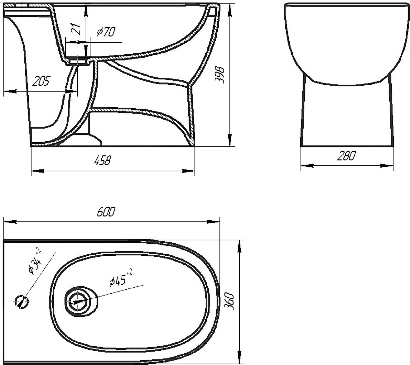 Биде напольное Sanita Luxe Art (Sanita Luxe) 36х60х39.3 керамика (BD.FS/Art/C/WHT.G/S1)