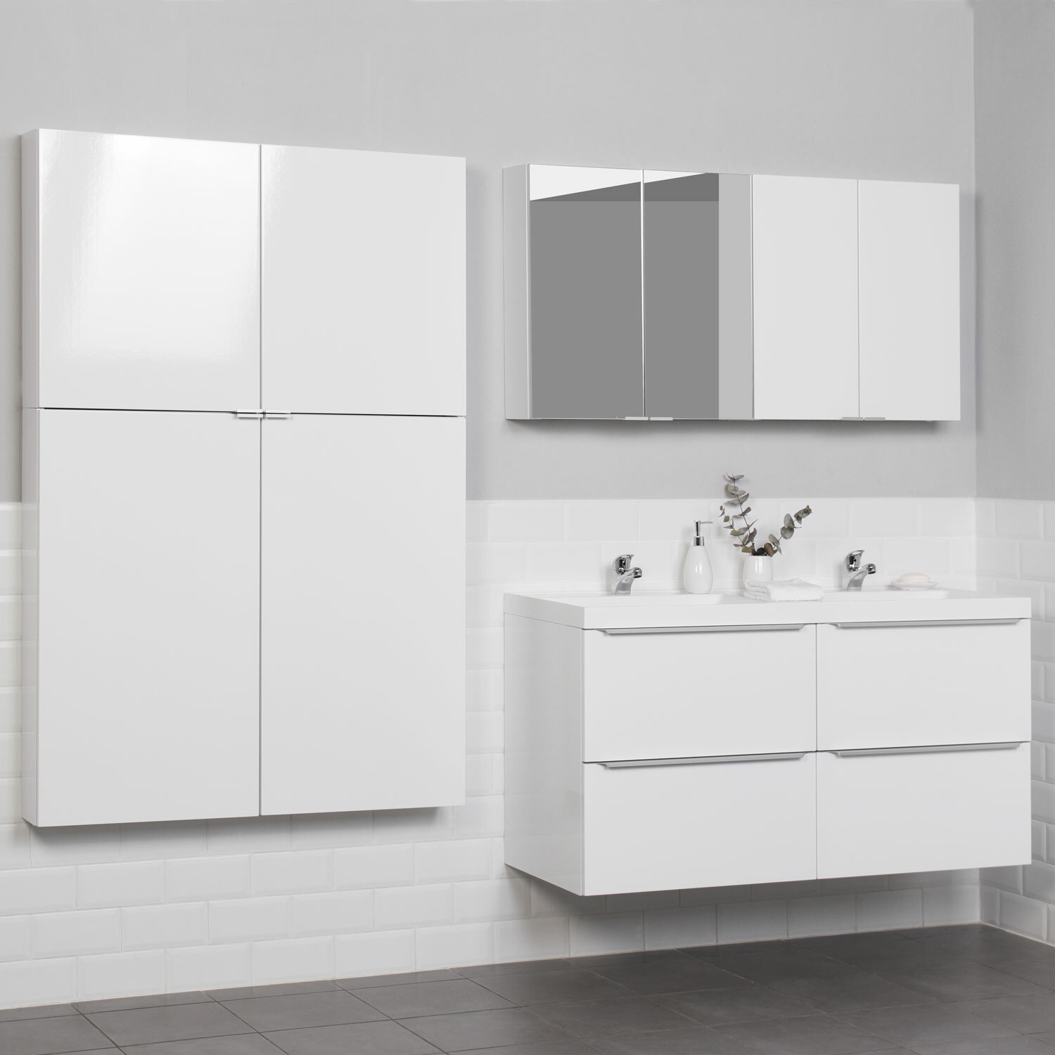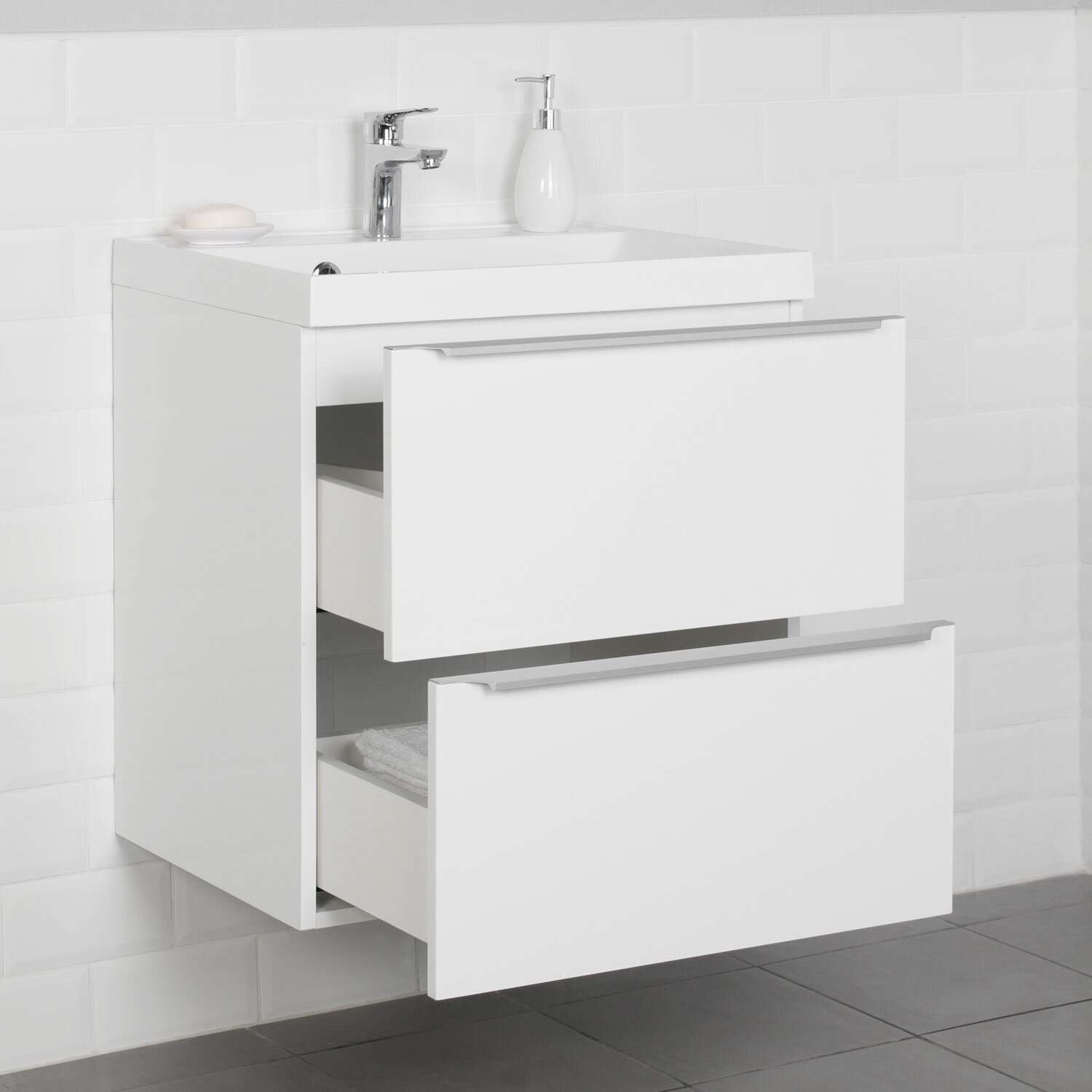| Плюсы: | очень классная тумба! подвесили, положили на нее деревянную столешницу, поставили чаши - выглядит просто супер! Места внутри достаточно, ящики ходят плавно, всё отлично |