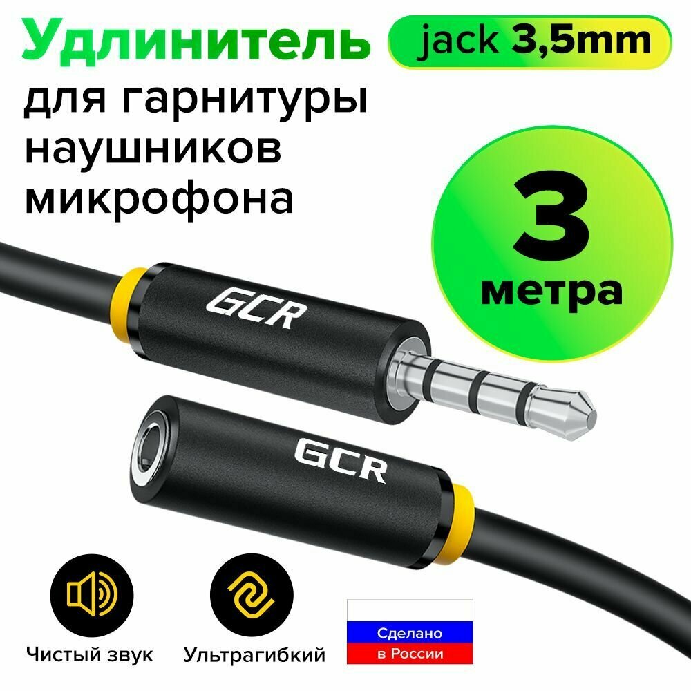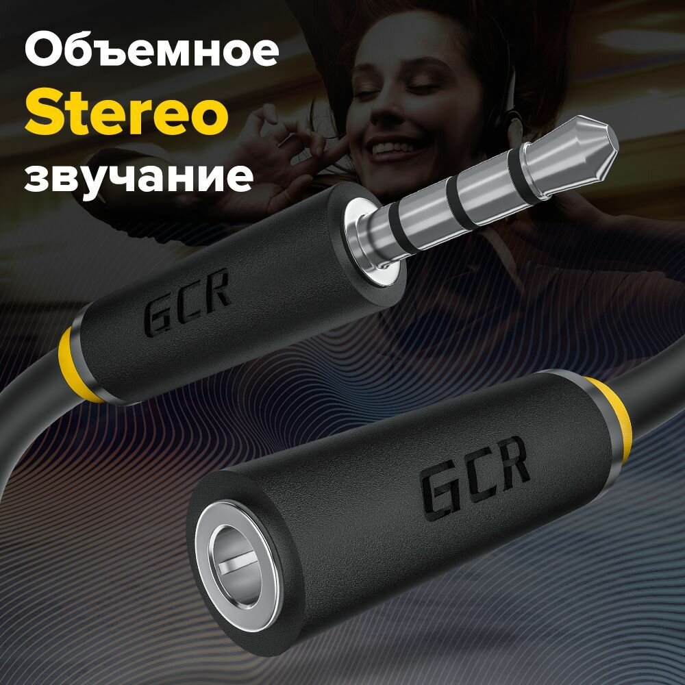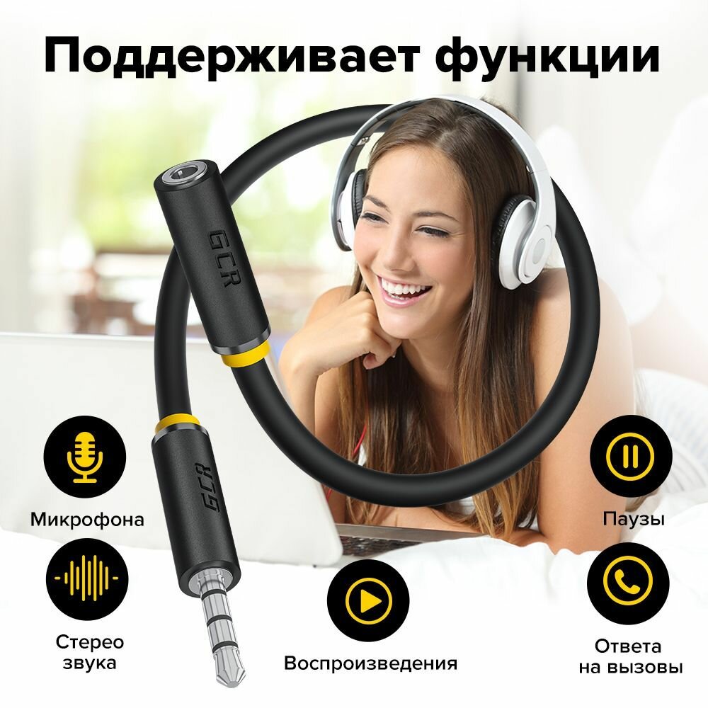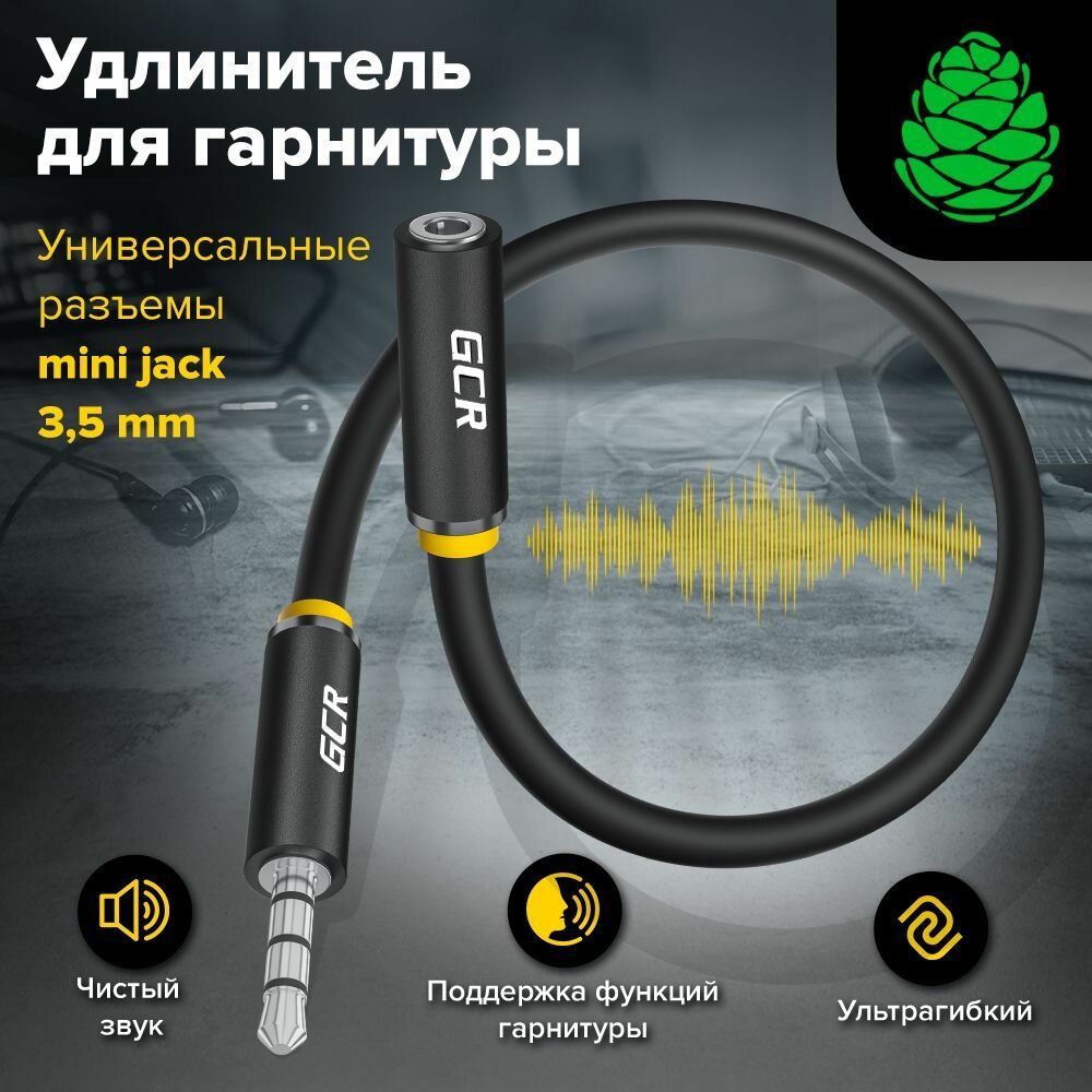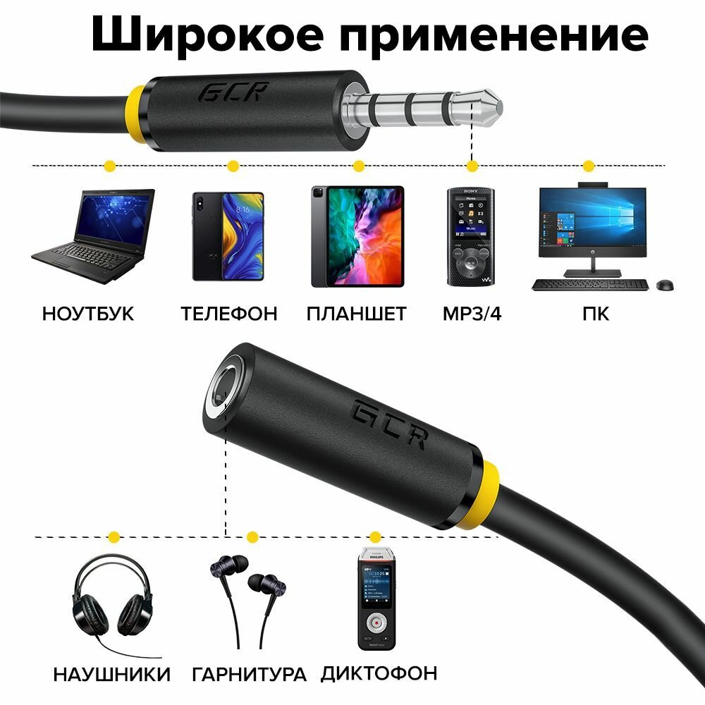 Удлинитель аудио AUX кабеля jack 3.5mm для наушников гарнитуры (GCR-STM12) черный;желтый 7.5м