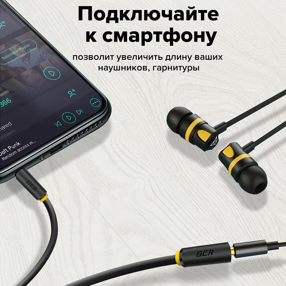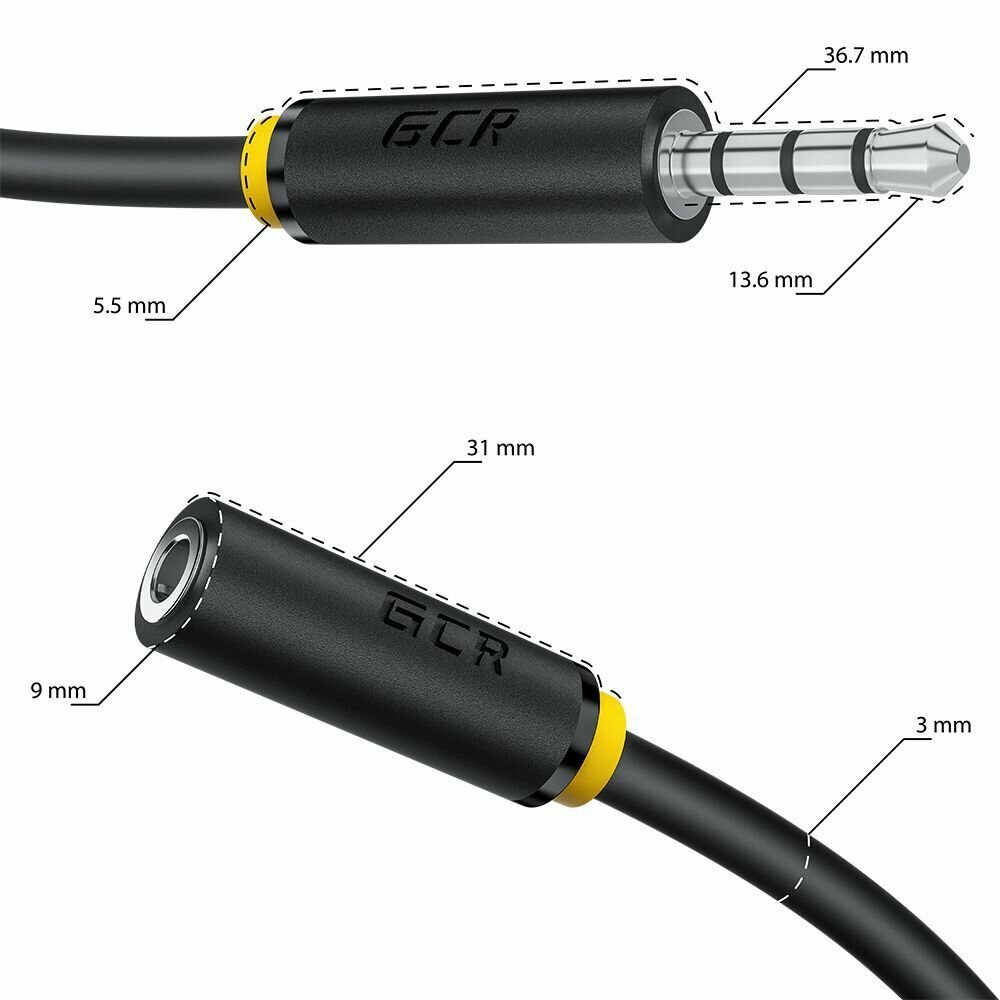 Удлинитель кабеля для гарнитуры aux Jack 3.5мм GCR для JBL SONY Sennheiser Panasonic стерео 50 см aux удлинитель для наушников