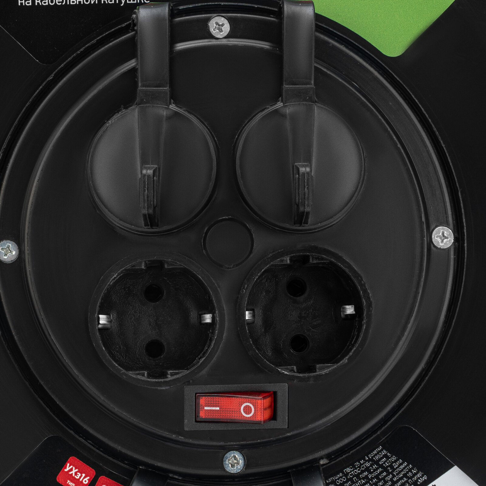 Удлинитель силовой на кабельной катушке, ПВС, 25 м, 4 розетки с крышкой, IP44, 16А, УХз16, Россия Сибртех