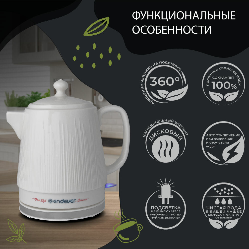 Чайник электрический керамический Endever KR-450C / 1,4л / 1200 Вт интересное: