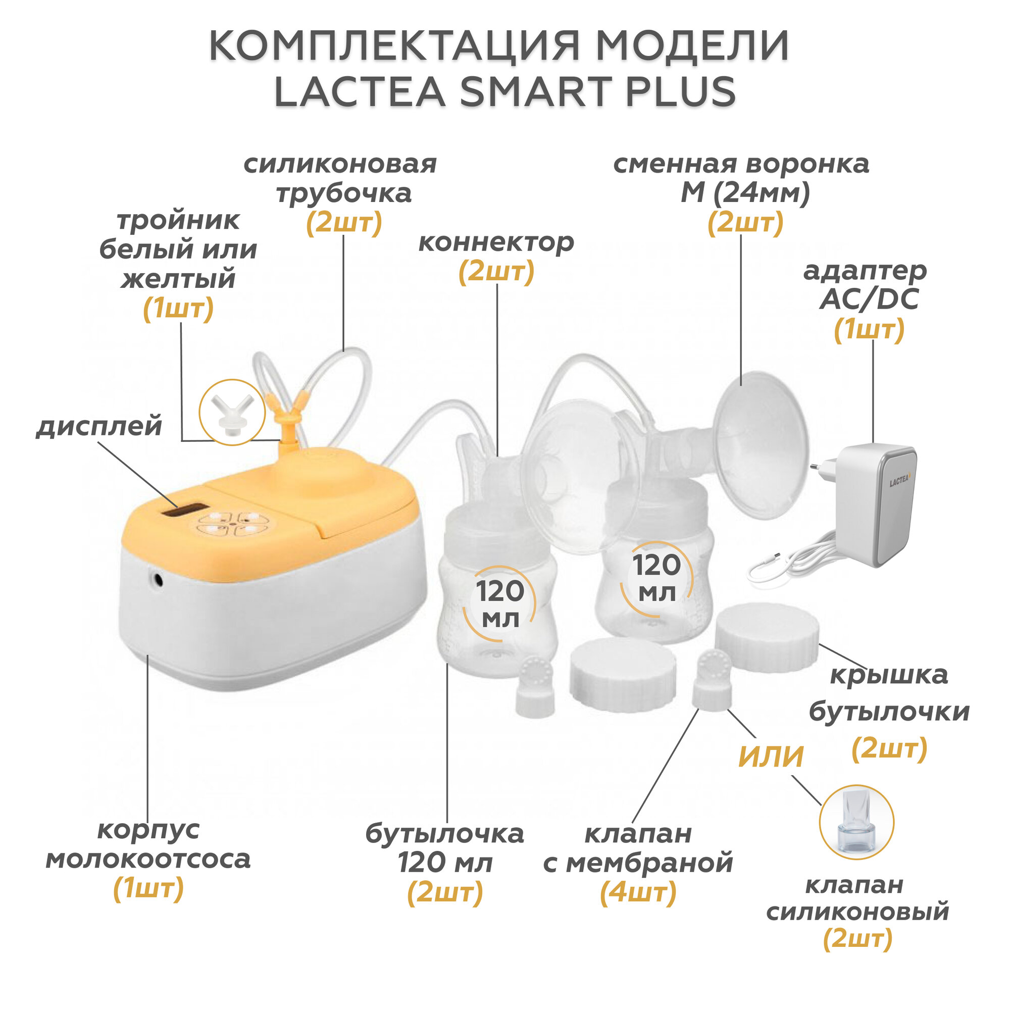 Электрический молокоотсос LACTEA Smart Plus с ЖК-дисплеем, двойное сцеживание, 3 режима
