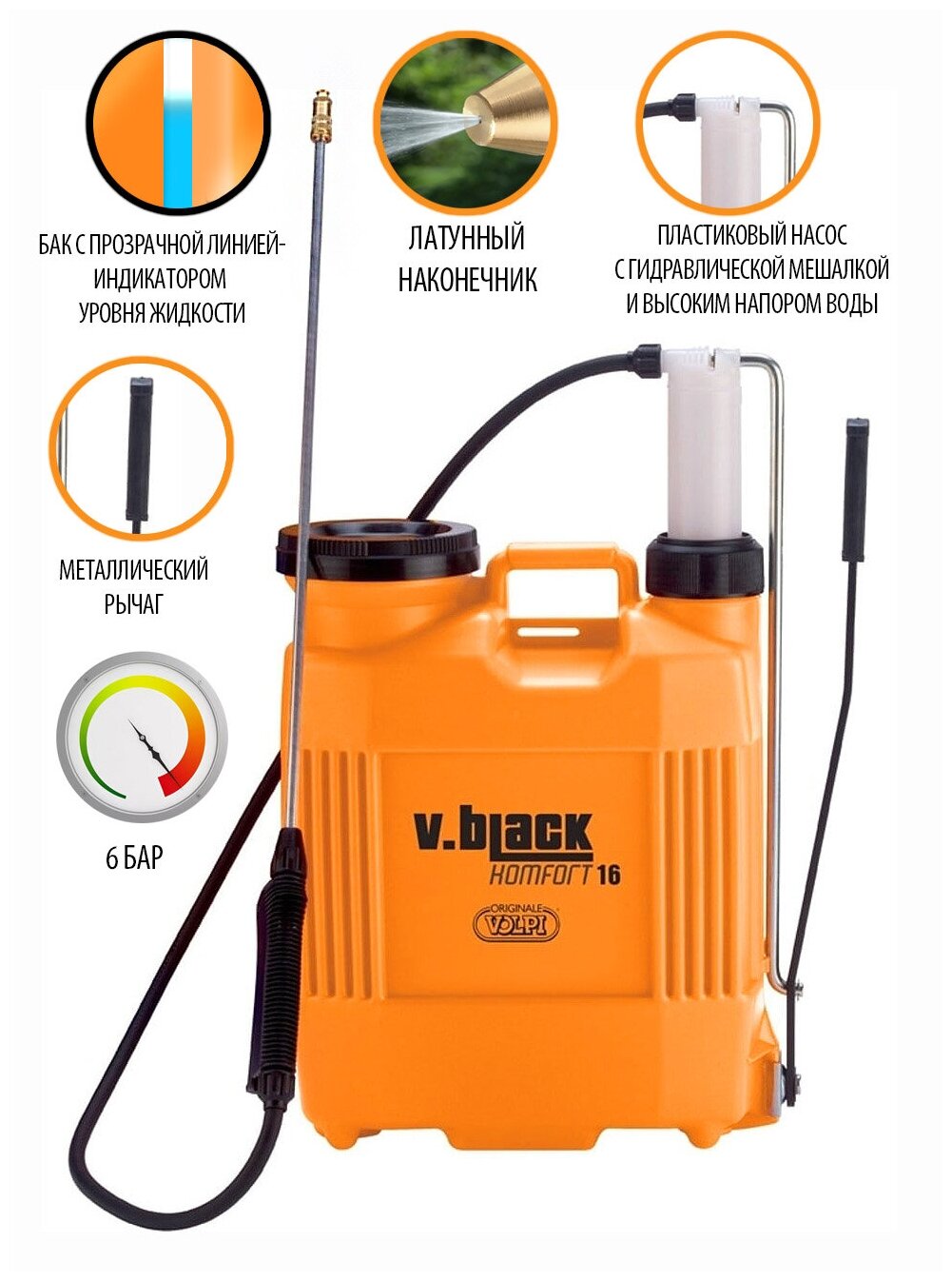 VOLPI ORIGINALE Ранцевый помповый опрыскиватель Volpi V.BLACK Komfort 16l 9116KPC интересное:
