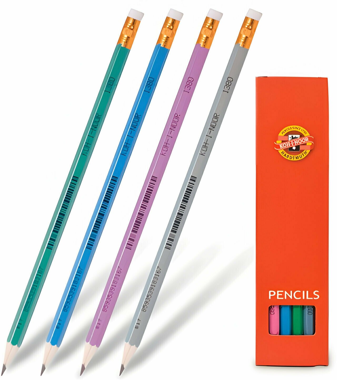 Карандаш чернографитный Koh-I-Noor Astra 1380 (НB, с ластиком, заточенный) (1380002017KSRU), 12шт.