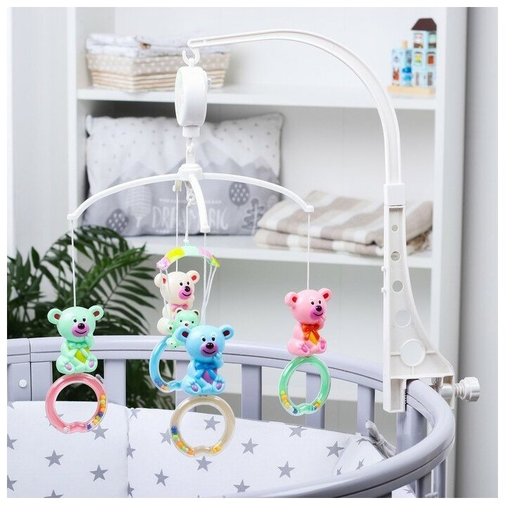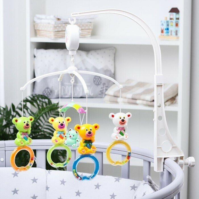 Купить Мобиль музыкальный "Мишки на кольце", заводной