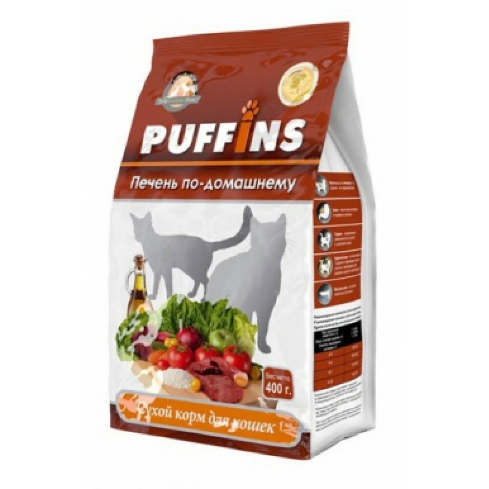 Puffins Сухой корм для кошек Печень по-домашнему, 400г 0.4 кг