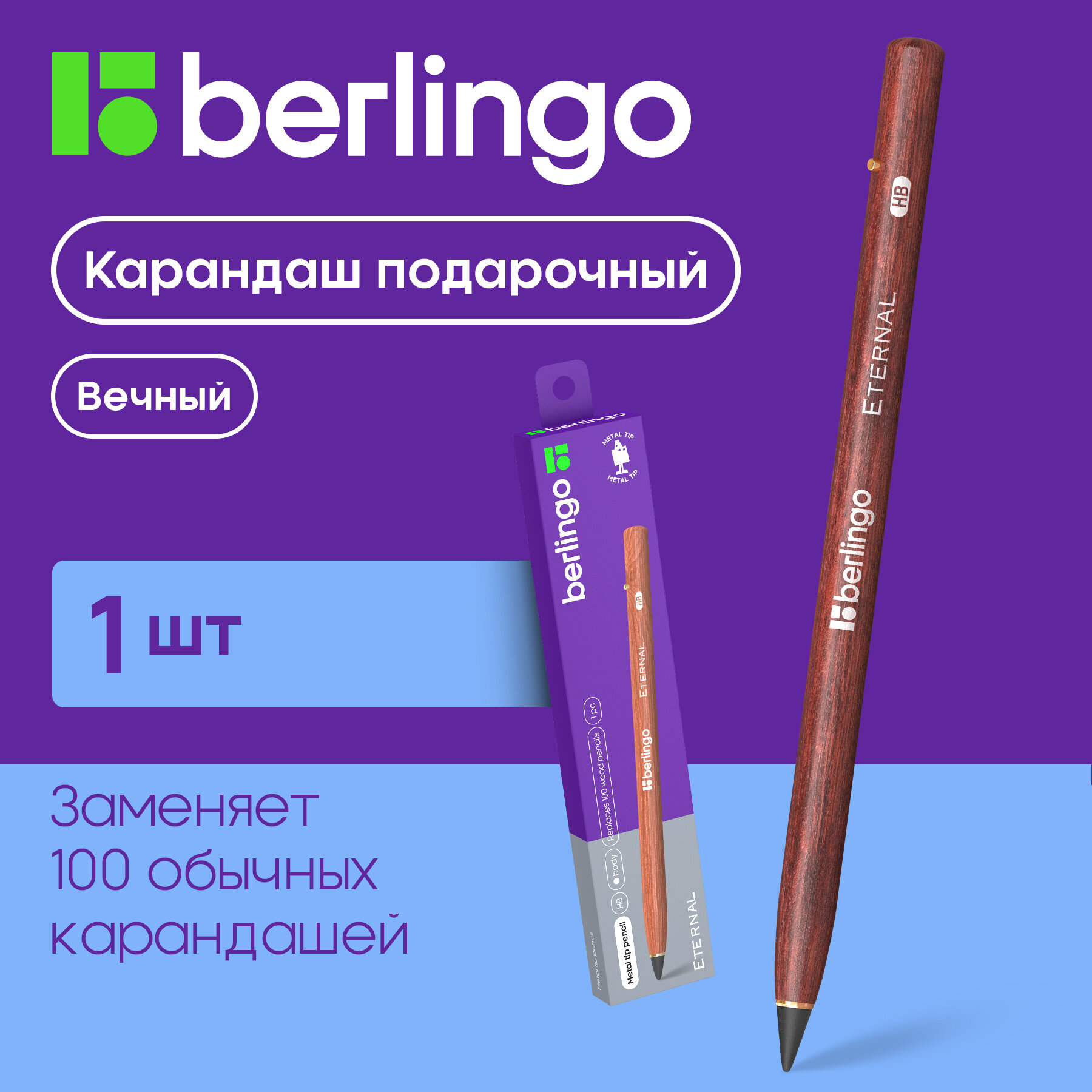 Купить Карандаш подарочный с металлическим наконечником Berlingo "Eternal", цвет корпуса натуральное дерево, инд. упак. (BP01401)
