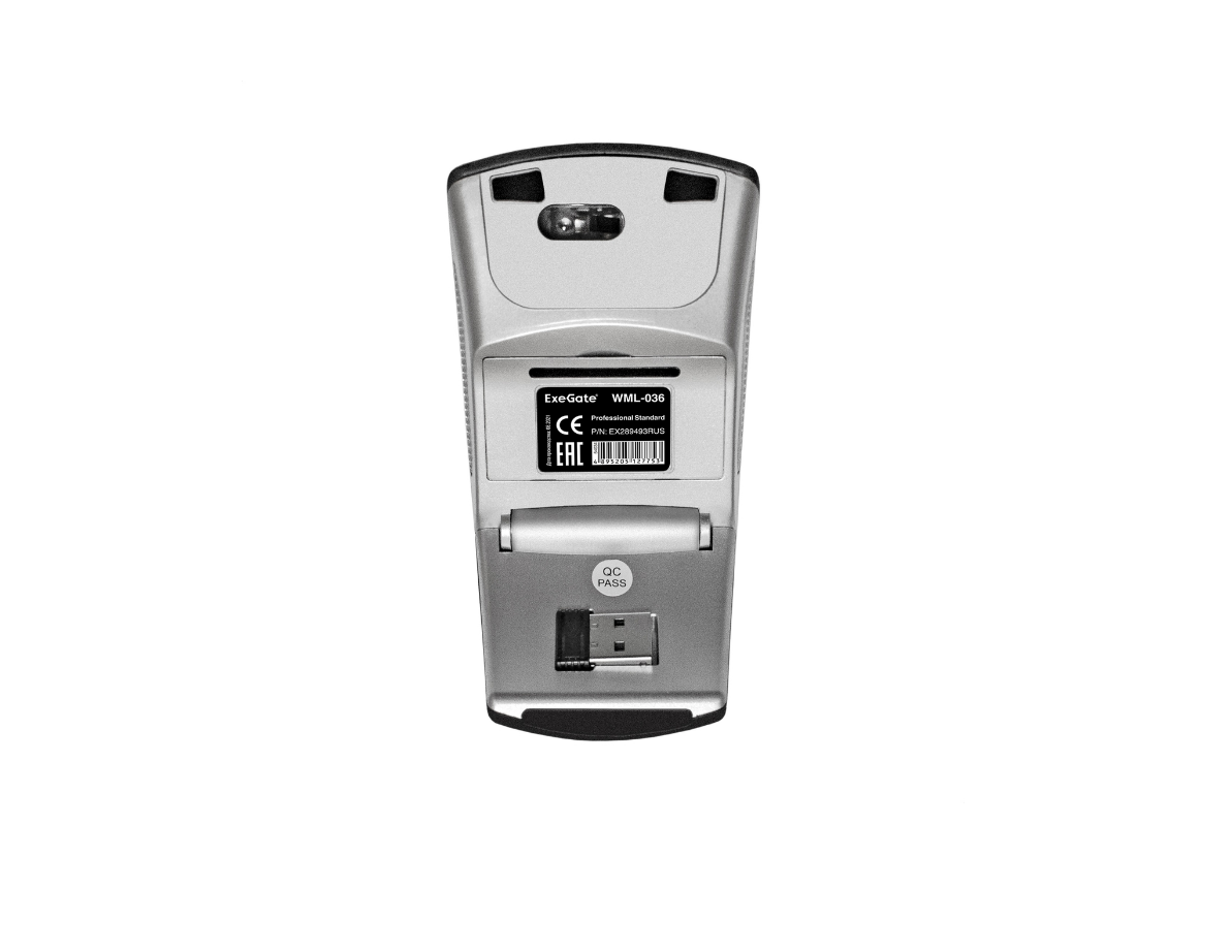 Мышь беспроводная ExeGate WML-036 2,4 ГГц, USB, лазерная, 1000dpi, 3кн.+Scroll, черная