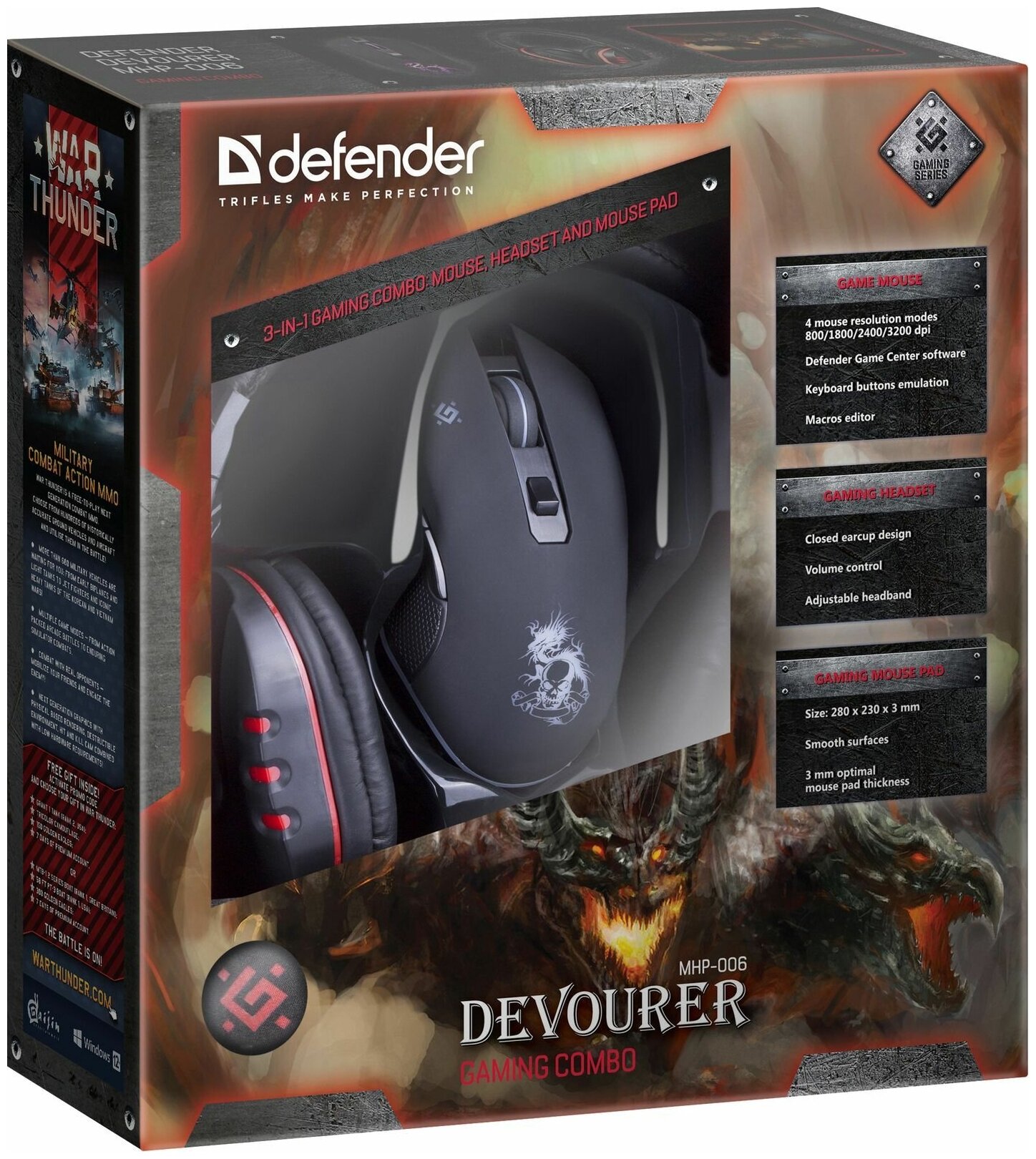 Купить Игровой набор Defender Devourer MHP-006 Мышь + Гарнитура + Ковер