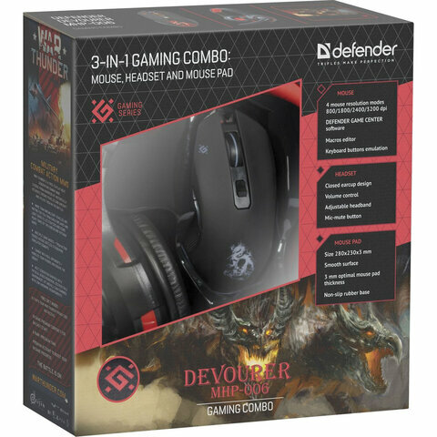 игровая мышь с гарнитурой и ковриком Defender Devourer MHP-600