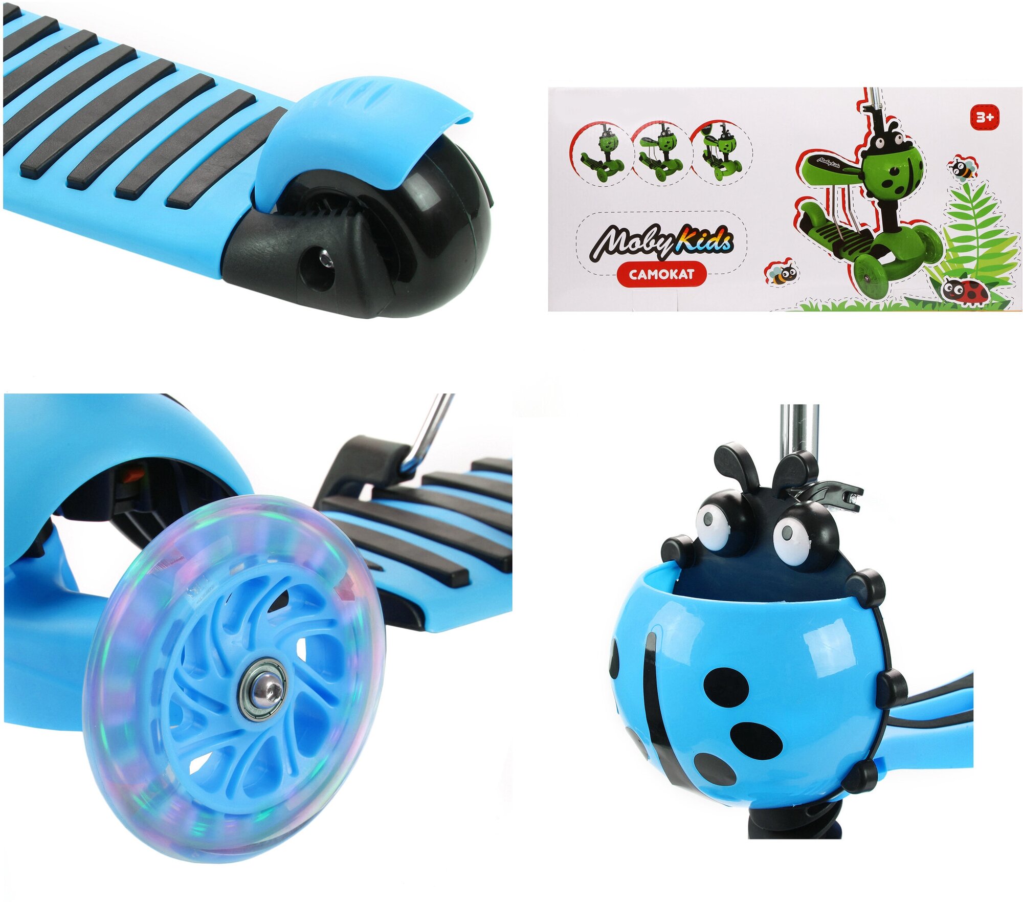 Самокат MobyKids Божья коровка 3 в 1, свет. кол., синий Moby Kids 641408
