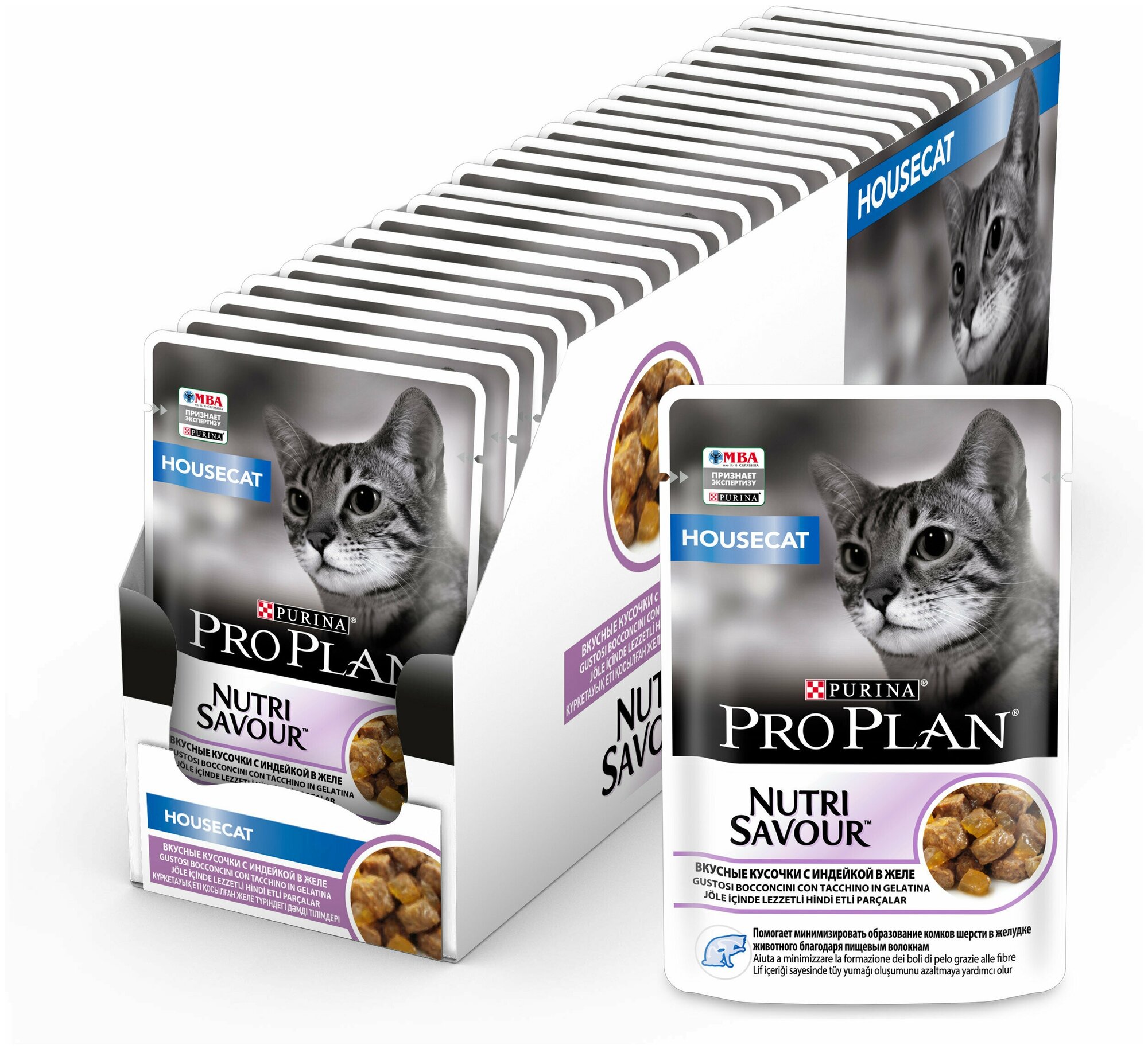 Pro Plan Housecat кусочки в желе для домашних кошек с индейкой 85гр (Упаковка 26шт)