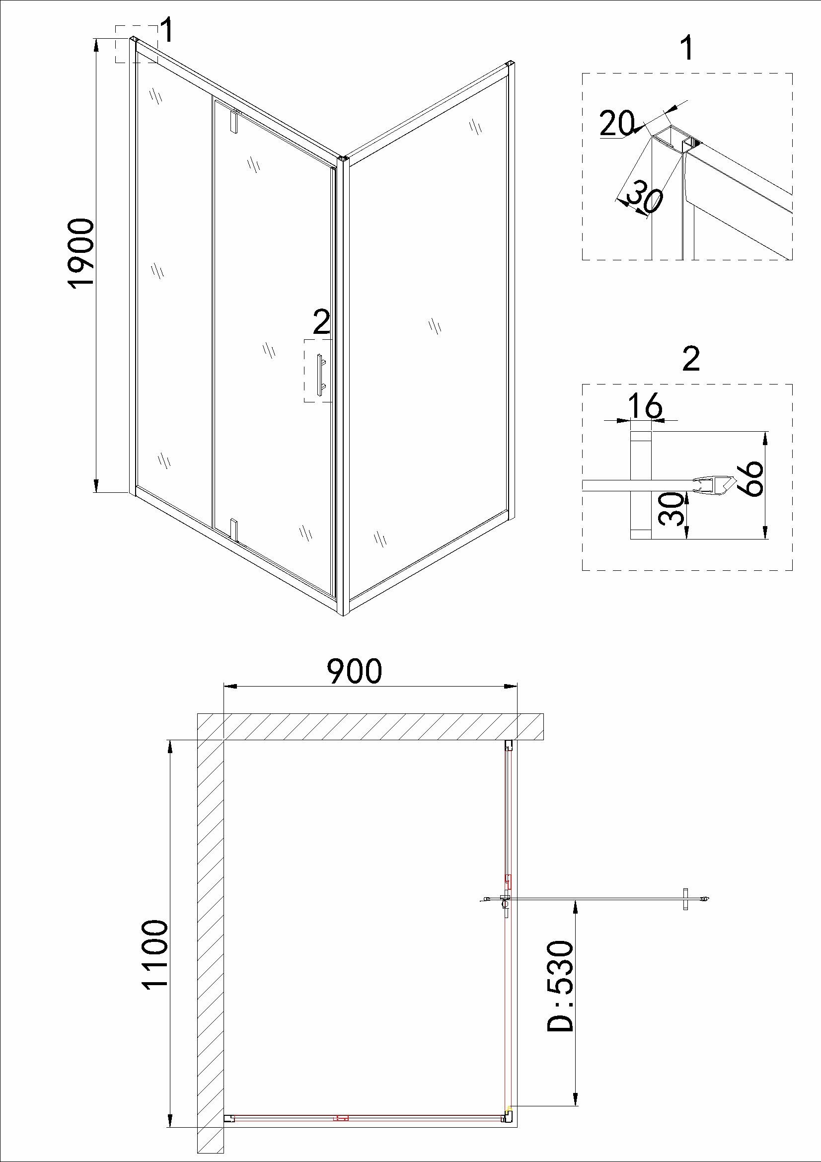 Душевое ограждение Niagara NG-83-11AB-A90B (110*90*190) прямоугольник, дверь распашная