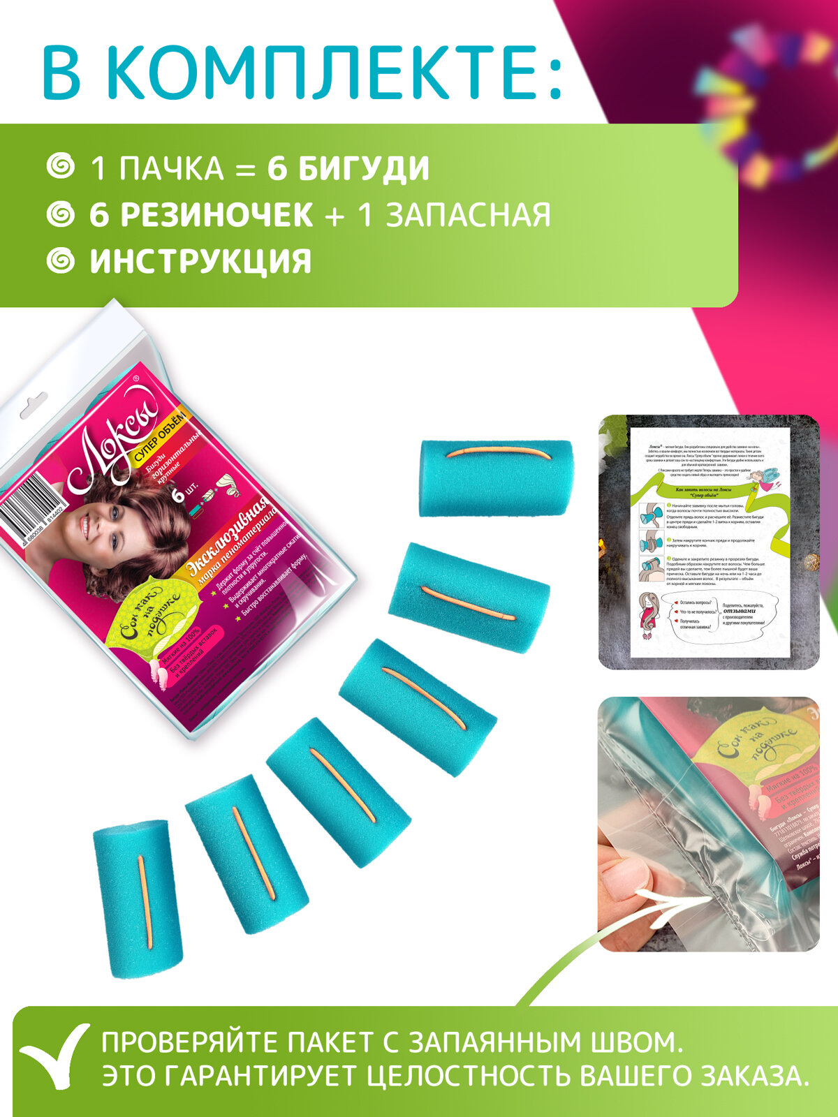 Бигуди Локсы для коротких волос Супер объём. Для завивки кудрей и локонов. Для укладки и объема. Диаметр 3.6 см 6 шт. интересное: