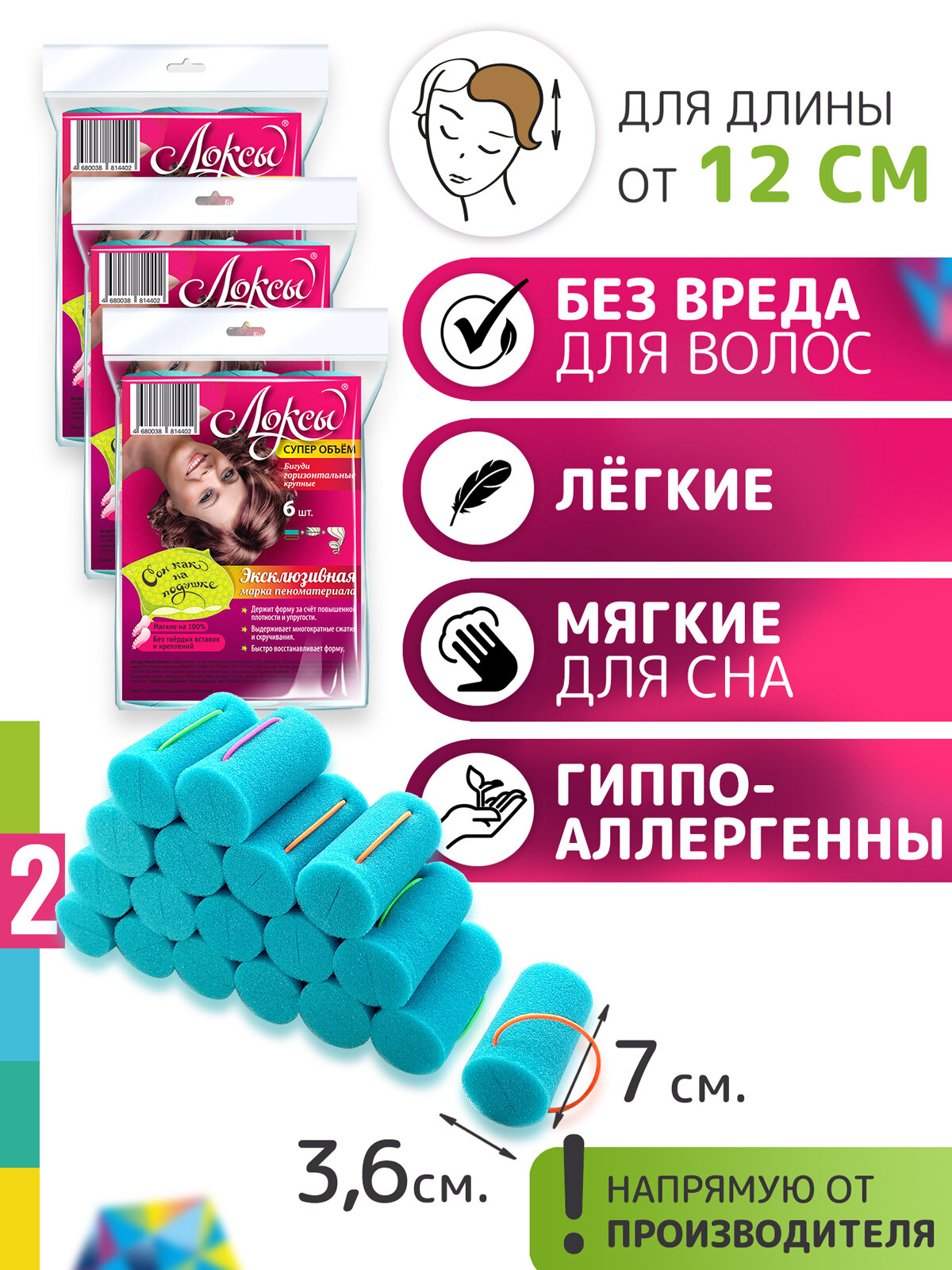 Бигуди Локсы для коротких волос Супер объём. Для завивки кудрей и локонов. Для укладки и объема. Диаметр 3.6 см 18 шт. интересное: