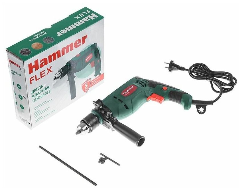 Ударная дрель Hammer UDD650LE, 650 Вт зеленый