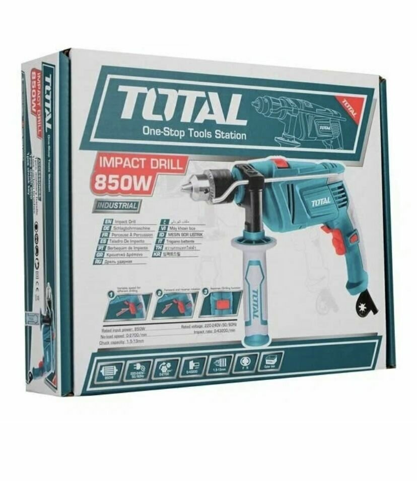 Электрическая дрель ударная TOTAL TG109136, 2700 об/мин, 13мм, 1ск, 850Вт