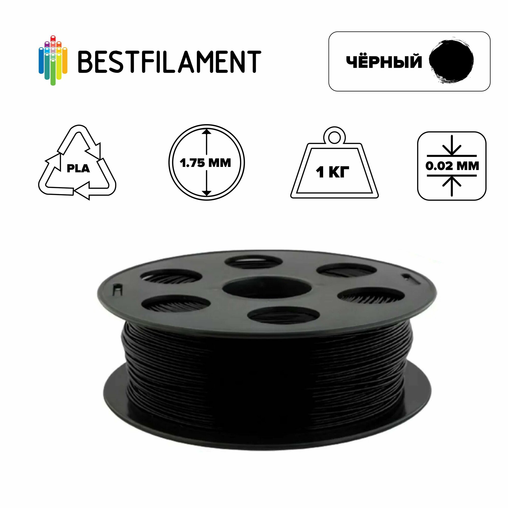Купить Bestfilament Катушка PLA пластика Bestfilament 1.75 мм 1кг., черная (st_pla_1kg_1.75_black)