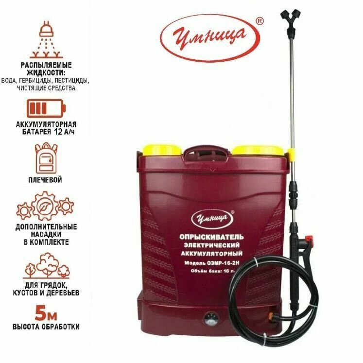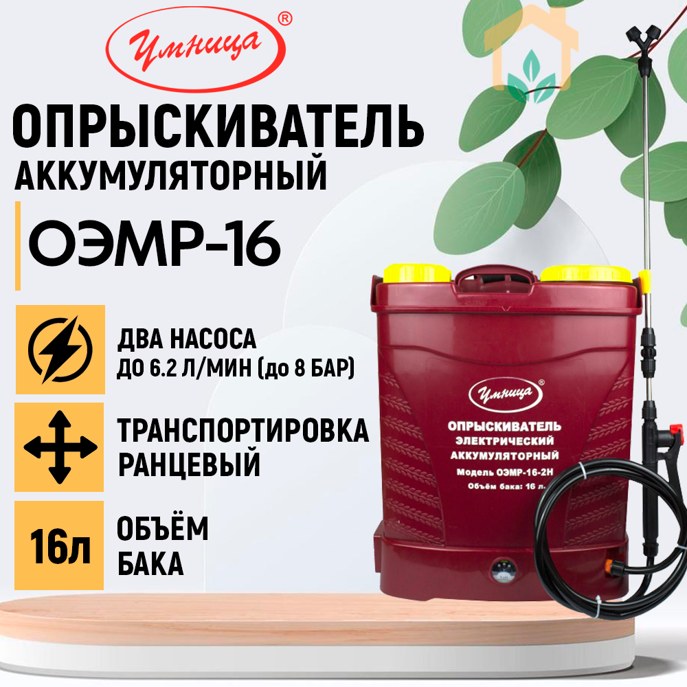 Опрыскиватель аккумуляторный Умница ОЭМР-16-2Н / Электроопрыскиватель / Садовый / Электрический / С емкой батареей