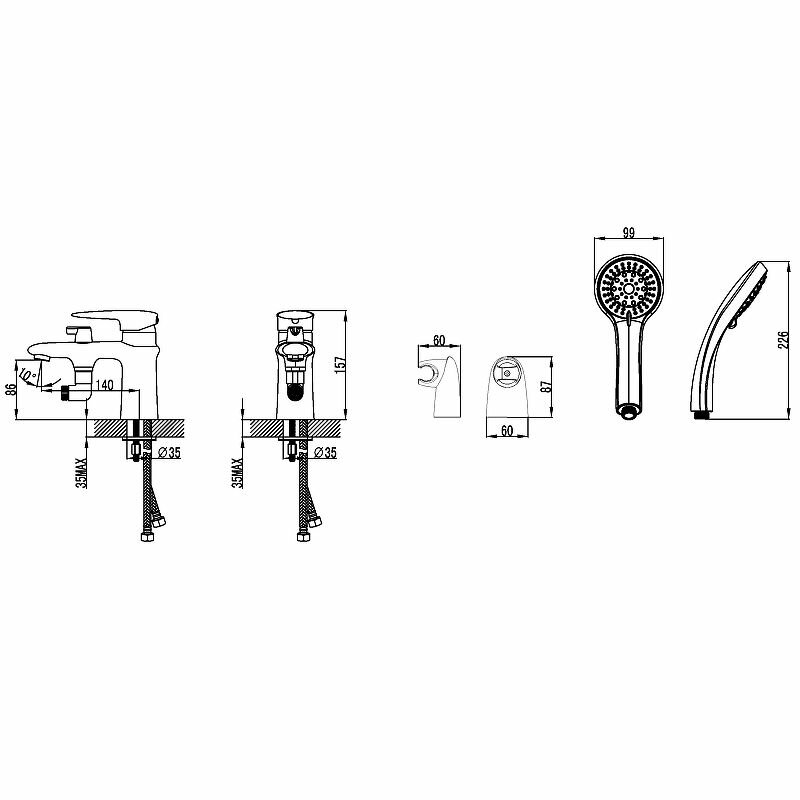 Смеситель Lemark Status LM4415C на борт ванны, с душевой лейкой, цвет: хром. Длина: 2000 мм