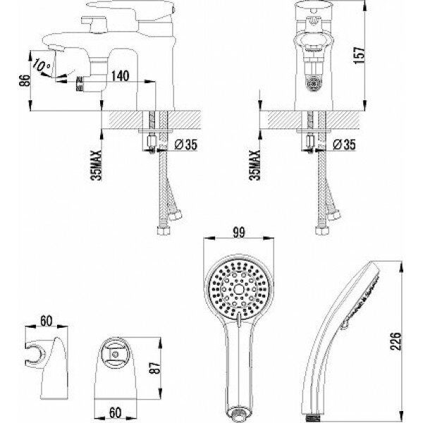 | Высота излива | 86 мм / 157 мм |