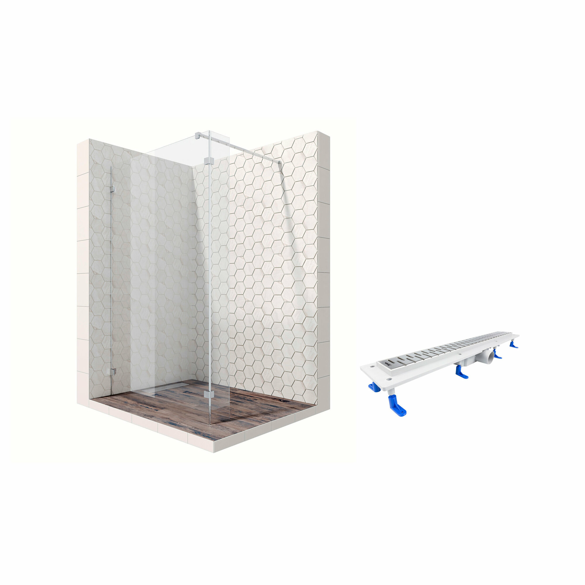 Комплект душевого ограждения (перегородка) со свободным входом с линейным трапом Ambassador Walk-in 15031105-ST10, с EasyClean, 90 х 25 см