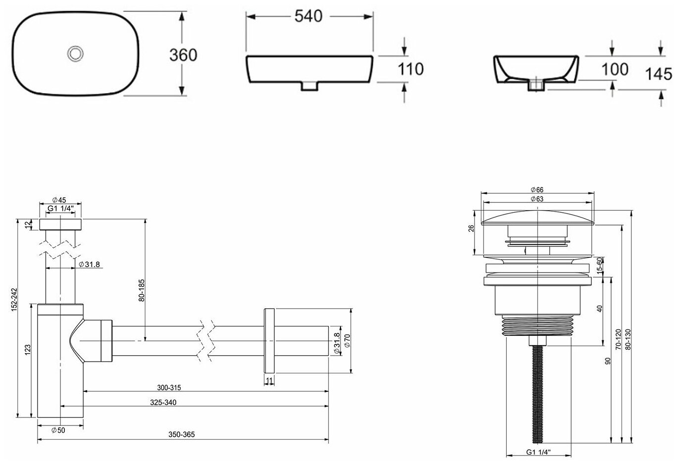Комплект 3 в 1 Lavinia Boho Bathroom Sink 21520006: накладная фарфоровая раковина 54 см, металлический сифон, донный клапан