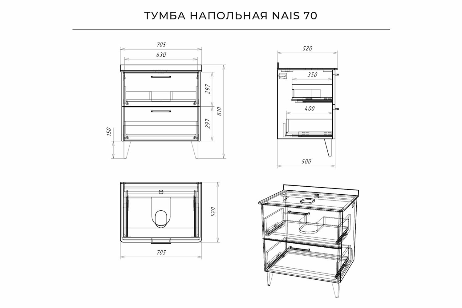 Тумба под раковину напольная Итана Nais 70 705х520х760 Амаретти интересное: