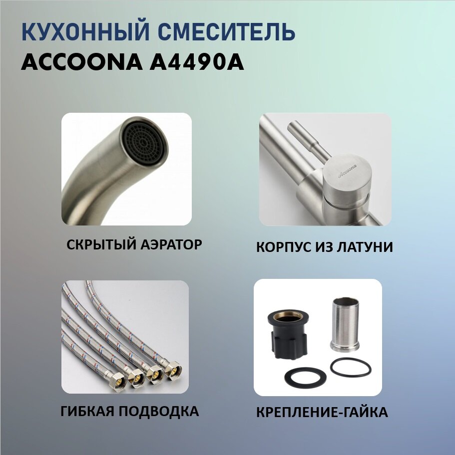 Купить Accoona Cмеситель для кухни Accoona A4490, однорычажный, нержавеющая сталь