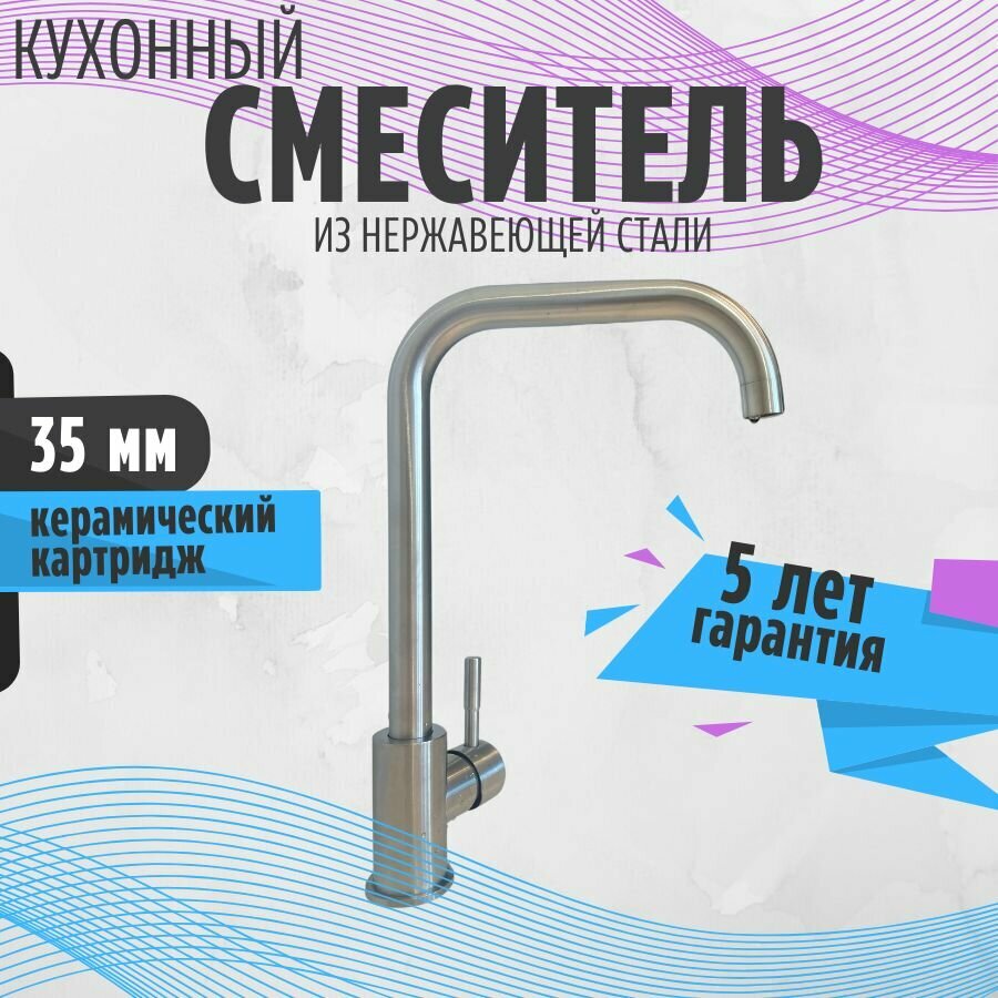 Cмеситель для кухни Accoona A4490, однорычажный, нержавеющая сталь./В упаковке шт: 1
