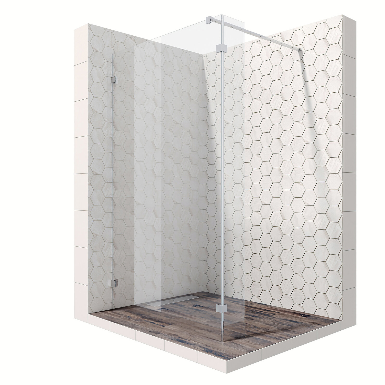 Душевая перегородка 100х25 см с трапом и свободным входом Ambassador Walk-in 15031106-ST2: душевая ширма из стекла 8 мм, профиль хром