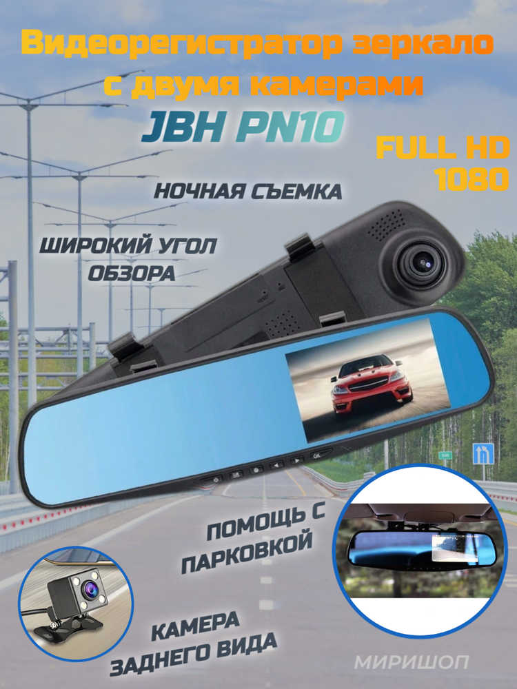 Купить JBH видеорегистратор-зеркало PN10 (2 камеры) (794511), черный