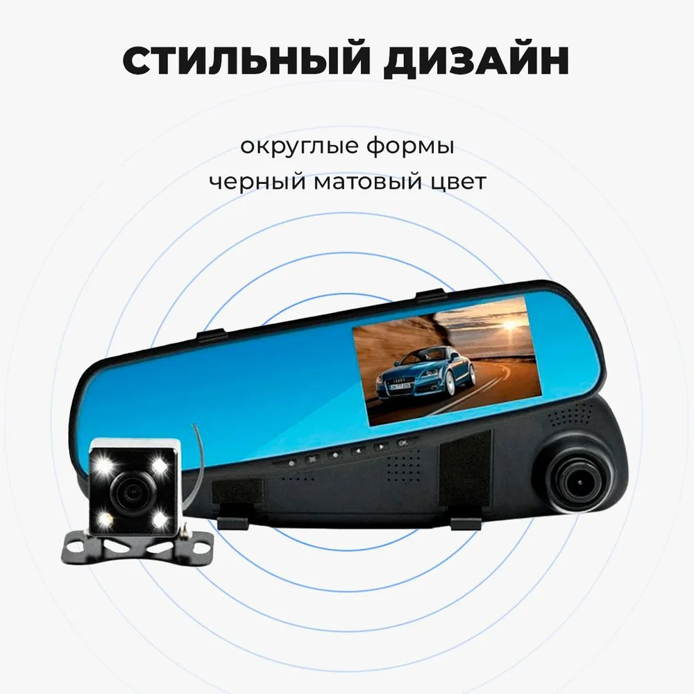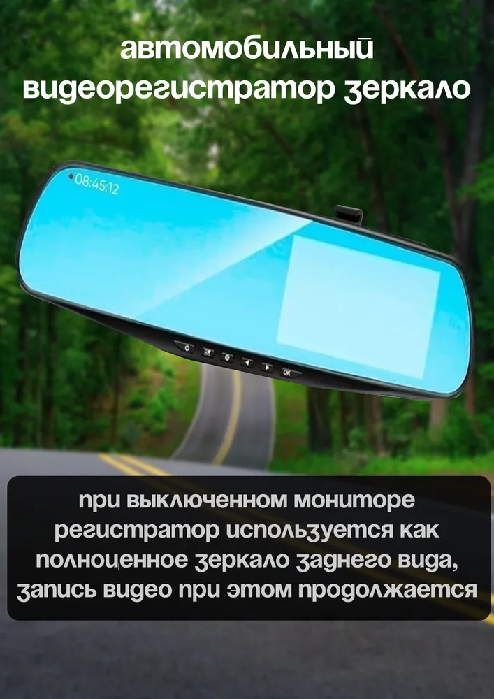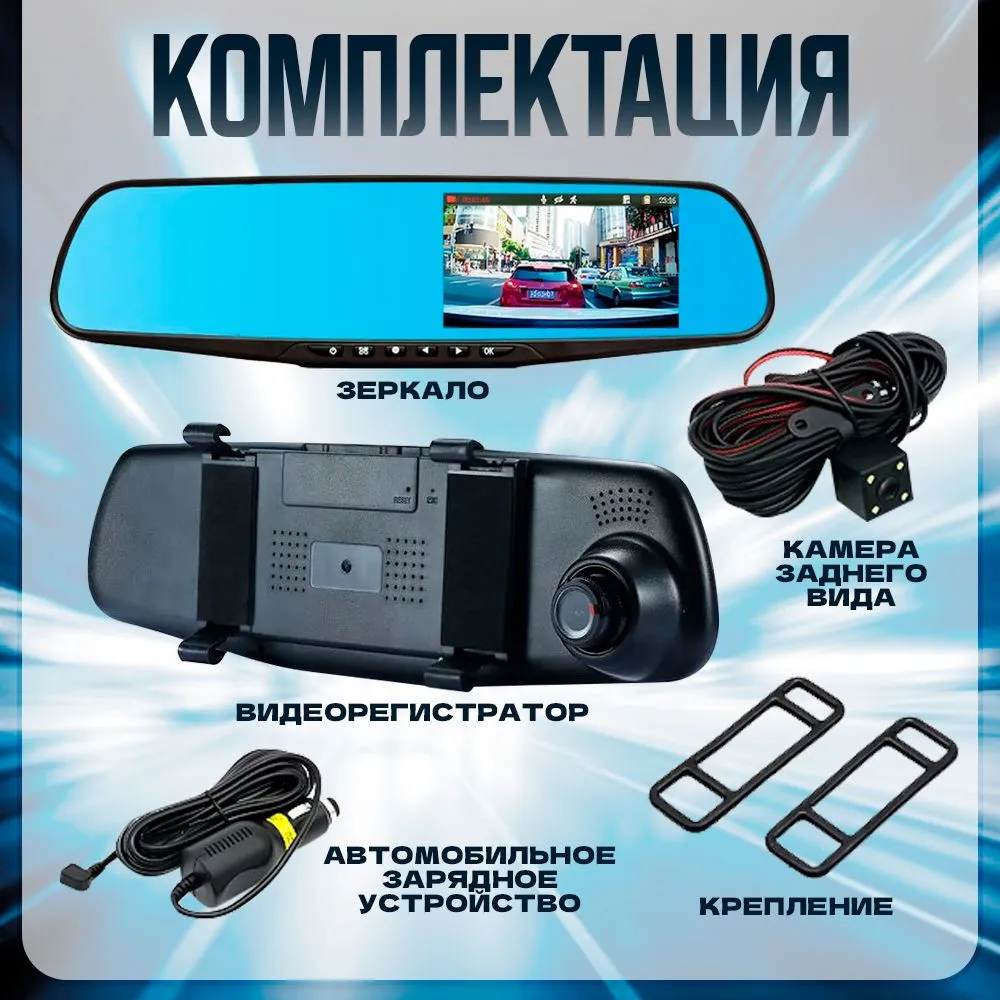 Автомобильный Двухканальный Видео-регистратор FullHD 1080P/Зеркало заднего вида/С режимом помощи парковки/JBH/Камера в комплекте