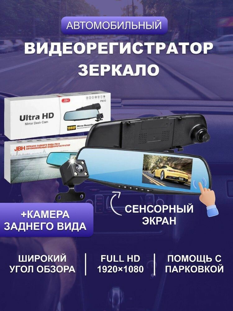Видеорегистратор зеркало JBH PN10 с двумя камерами Full HD 1080 ночная съемка / помощь при парковке