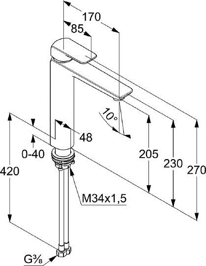 | Длина излива | 170 мм |