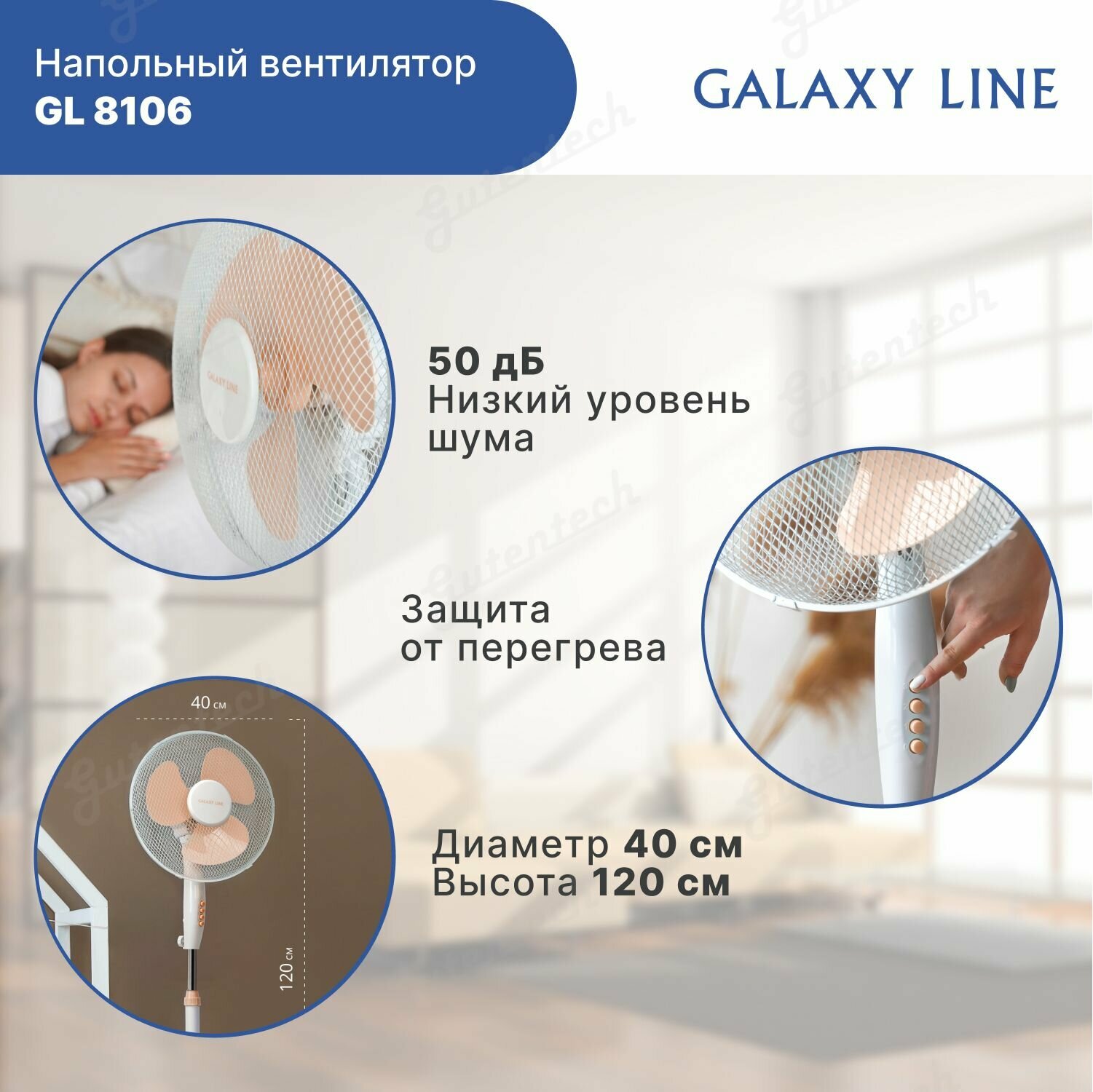 Вентилятор напольный GALAXY LINE GL8106, бежевый интересное: